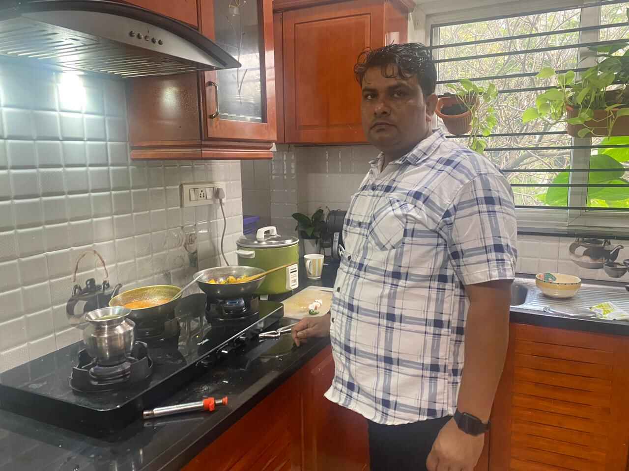 It also helps that Brajesh now loves cooking and eating south Indian food too. The dish he takes pride in making is a south Indian version of aloo masala that is just a hearty coming together of onions and boiled potatoes that are tempered mildly with spices and herbs. Distinct from a spicy aloo that a poori in the north of India is often paired with. “It’s simple and tasty,” Brajesh says, “Suits my stomach and feels good.”