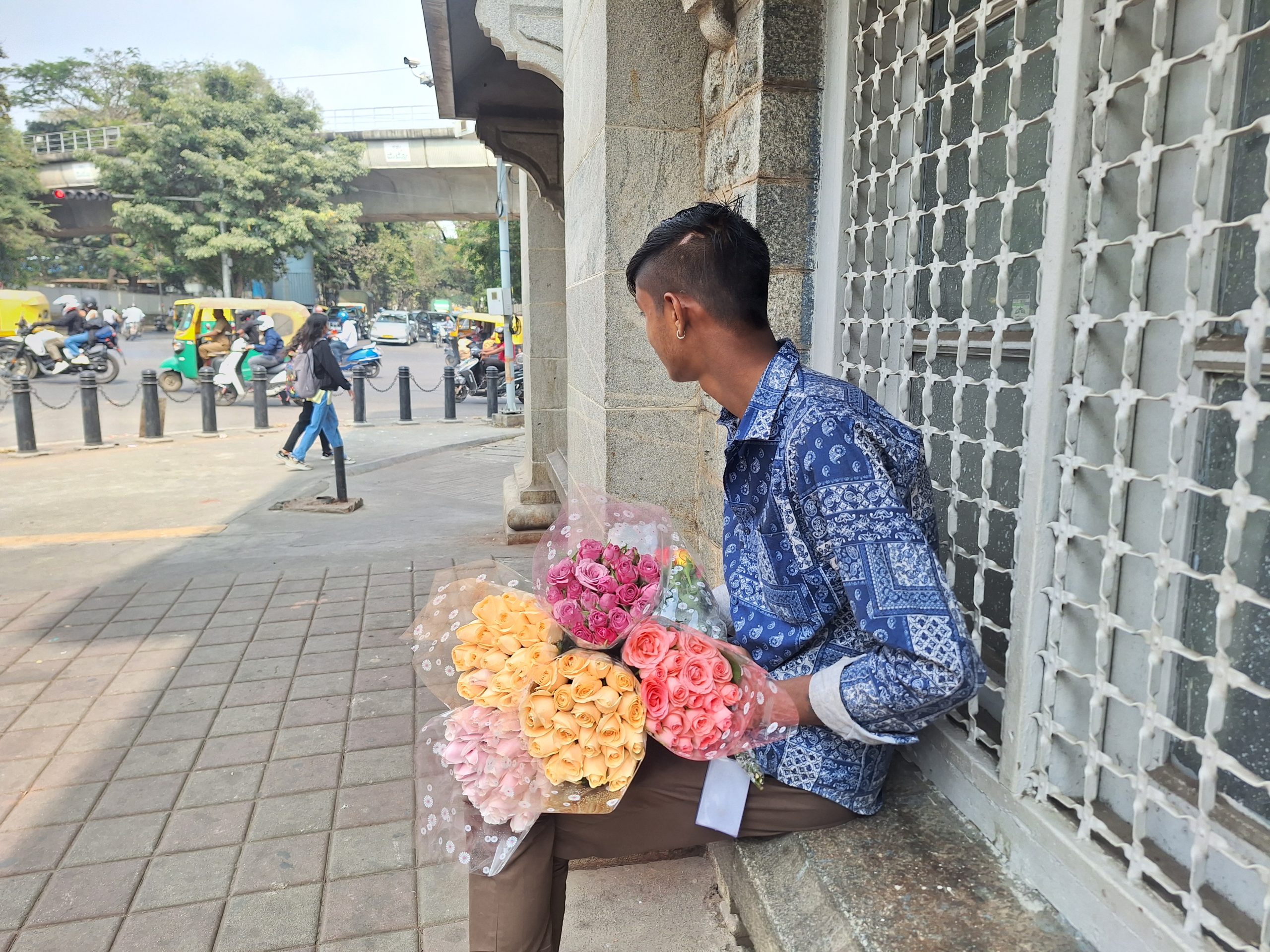 Bengaluru’s traffic, infamous for its gridlocks, offers longer and more consistent stoppages than many other cities, said hawkers. “We go to Delhi sometimes during Diwali to sell flowers there, and all of us combined earn around 1,000 to 1,500 rupees a day,” said Bunty Chauhan, a hawker from Bhilwara. “In Bengaluru, five of us earn 2,000-2500 rupees.”
