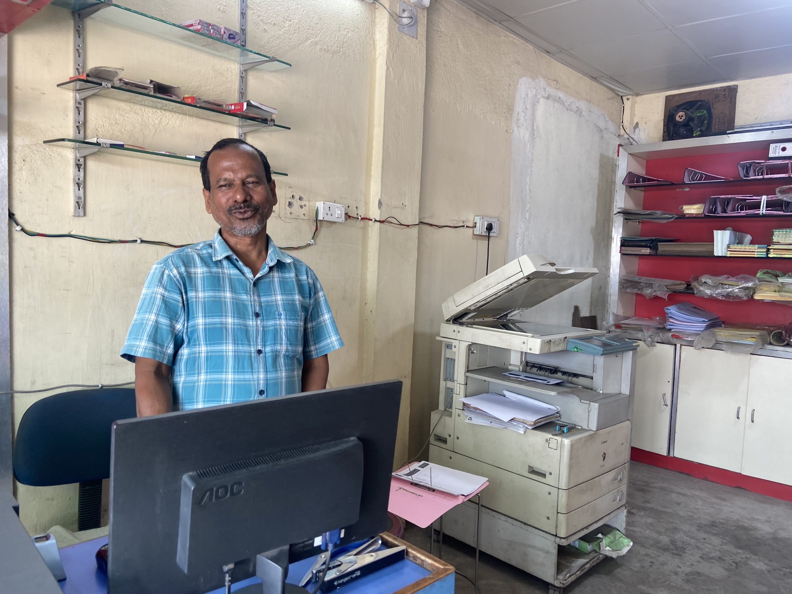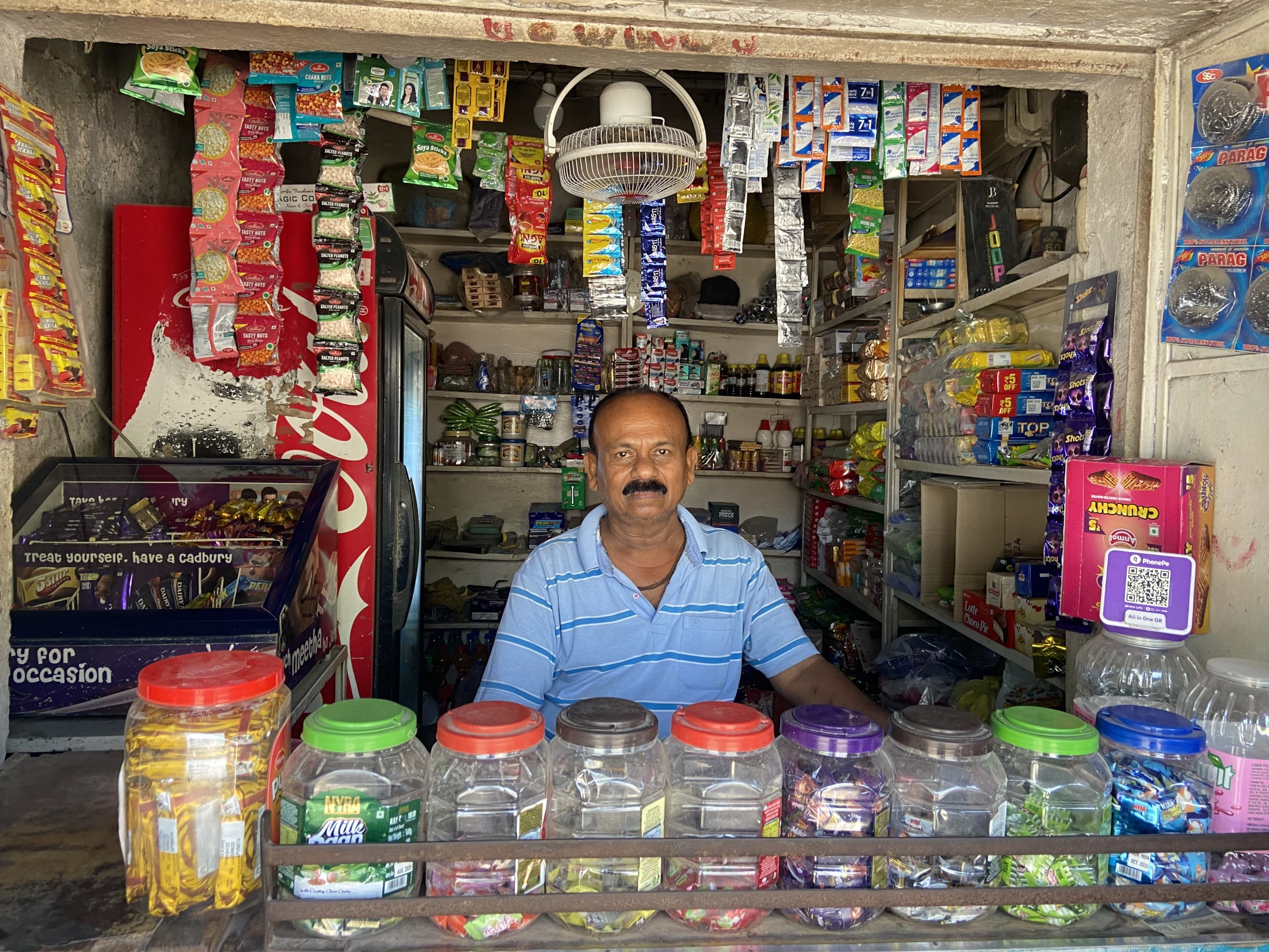 Icecream parlour owner Biswanath Nahak stands in his shop inside the residential complex of National Thermal Power Corporation, in Talcher, Odisha. Roli Srivastava/The Migration Story