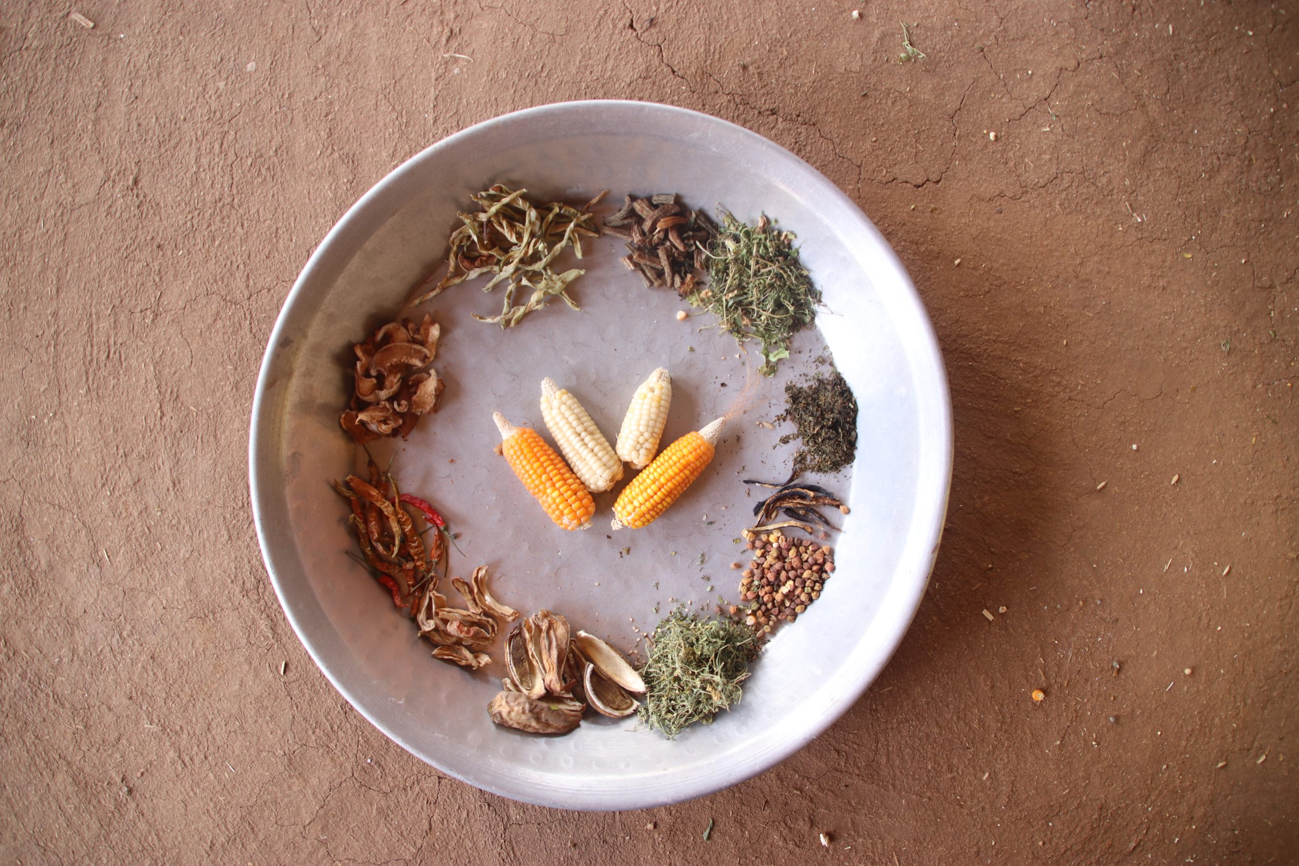 An assortment of sun-dried vegetables, seeds, and herbs carefully preserved by Bhil women in Banswara.
