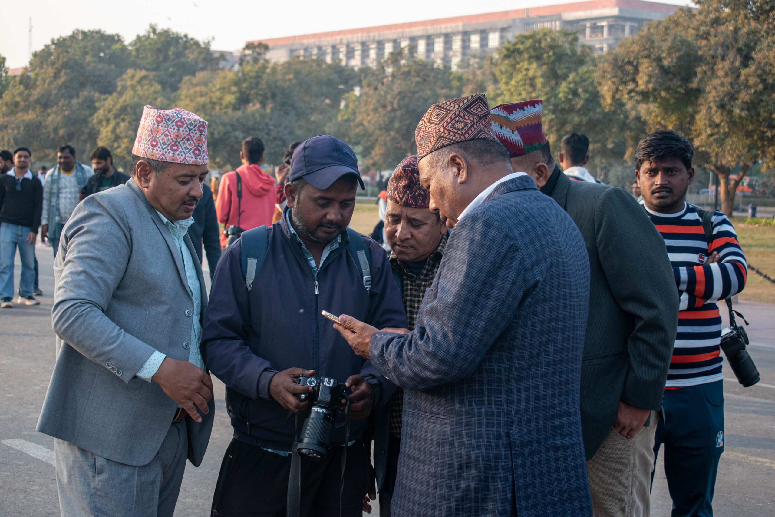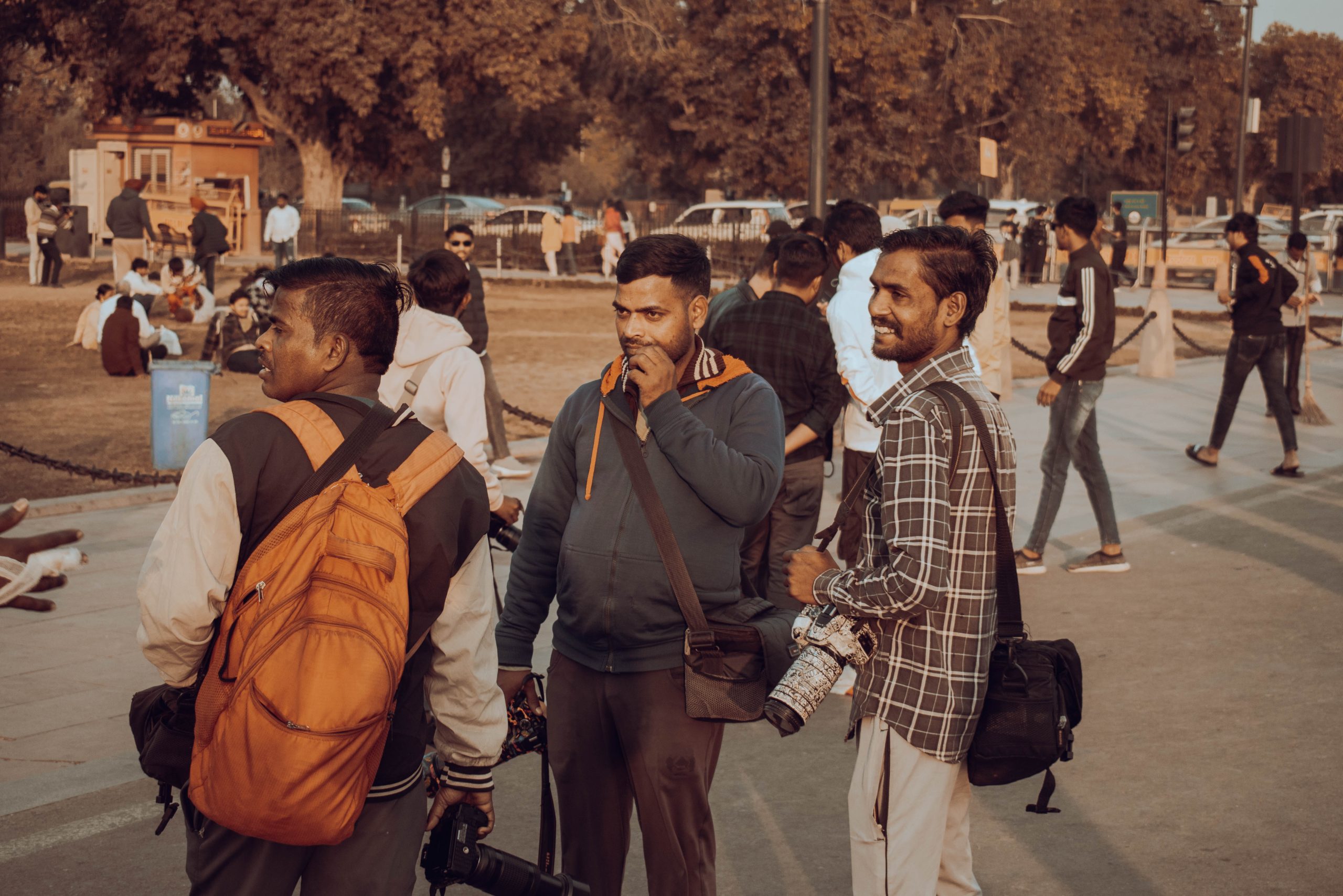 Photographers standing around the lawns of India Gate, with their cameras out, patiently waiting for clients. Tanuj Yadav/The Migration Story