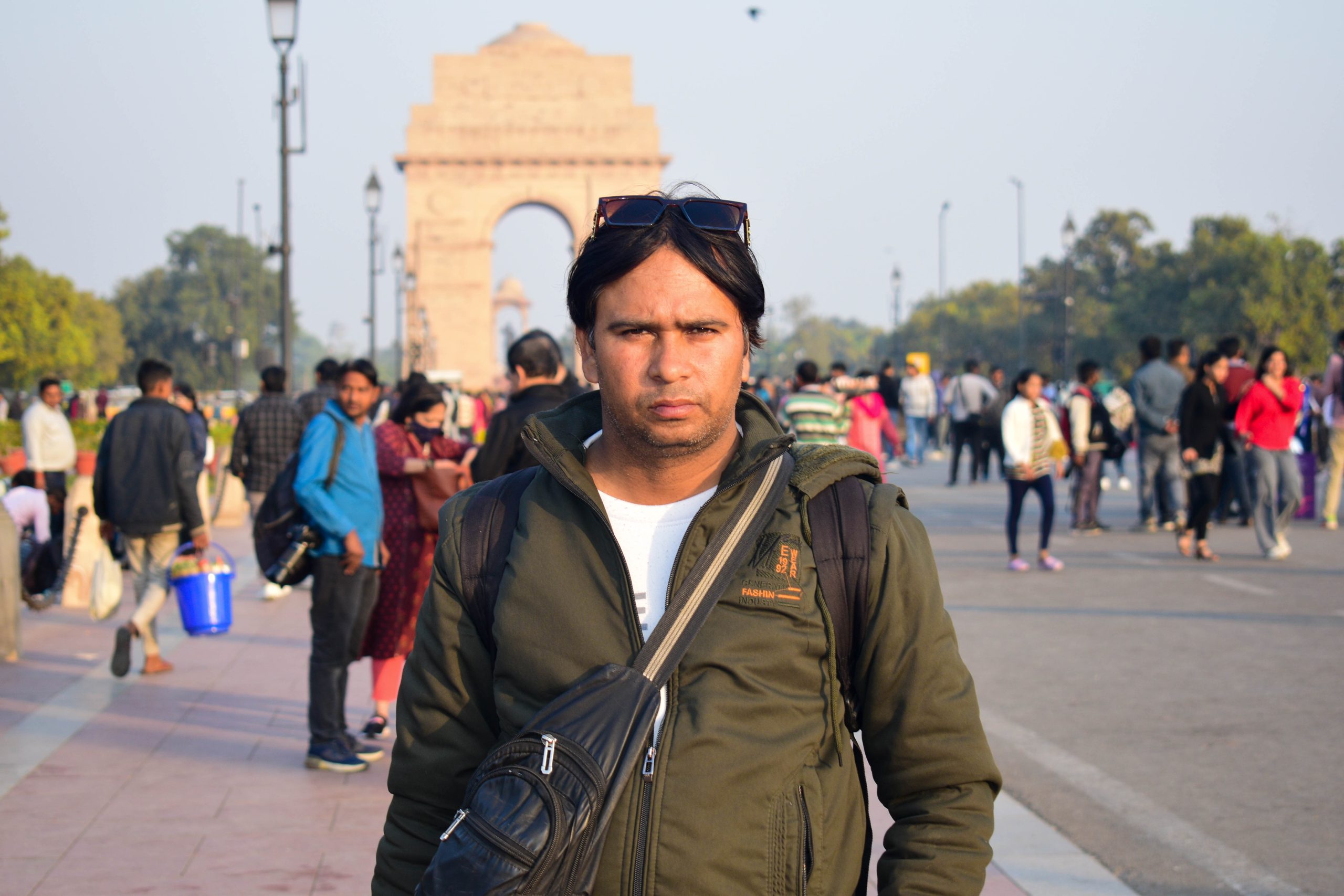 Street photographer Awadesh "Bunty" Dixit poses for a picture in front of India Gate. Tanuj Yadav/The Migration Story