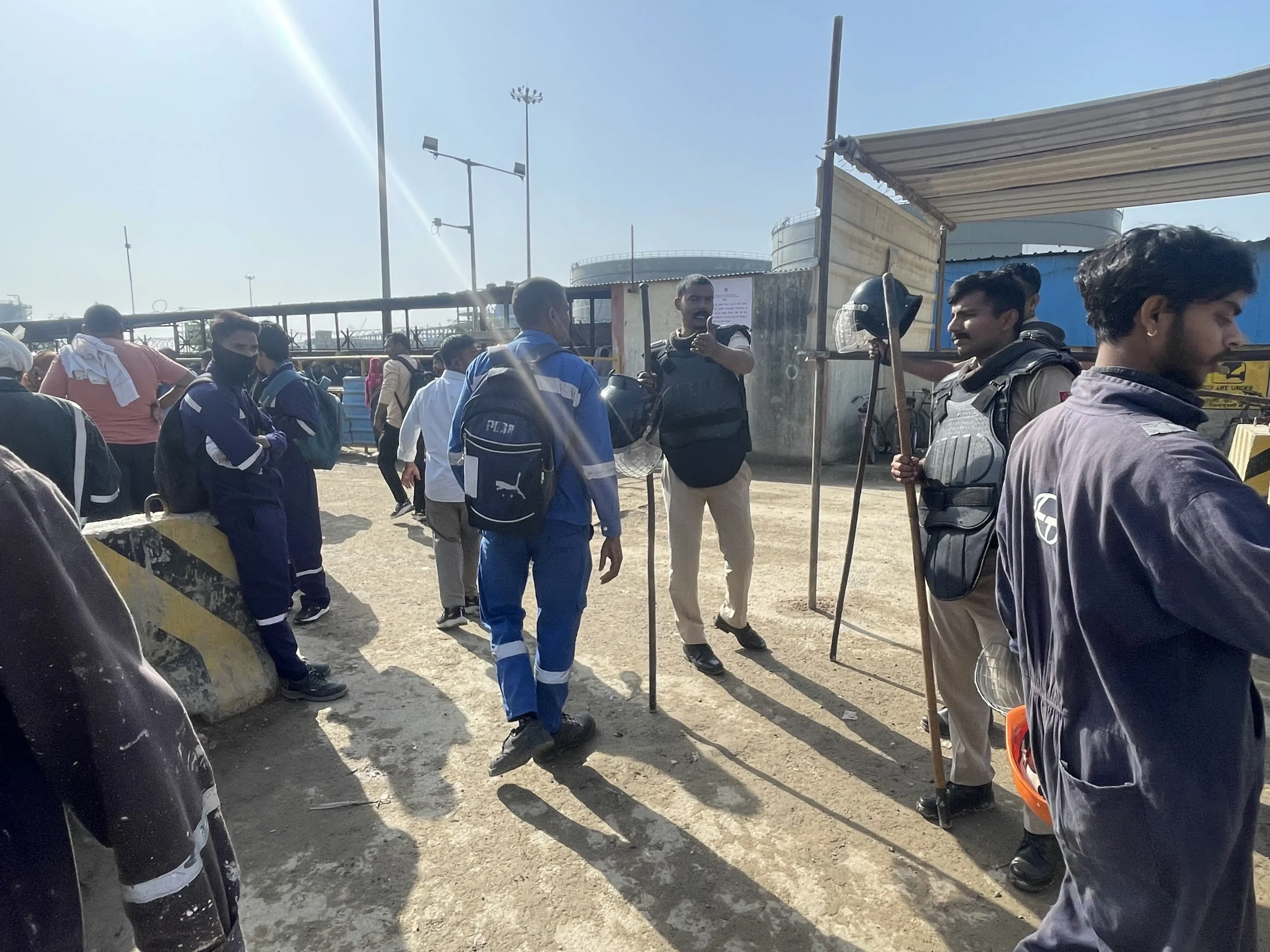 Today, dozens of policemen, and paramilitary forces continue to monitor workers at this refinery complex that supplies fuel to the national capital and is an energy hub for northern India.