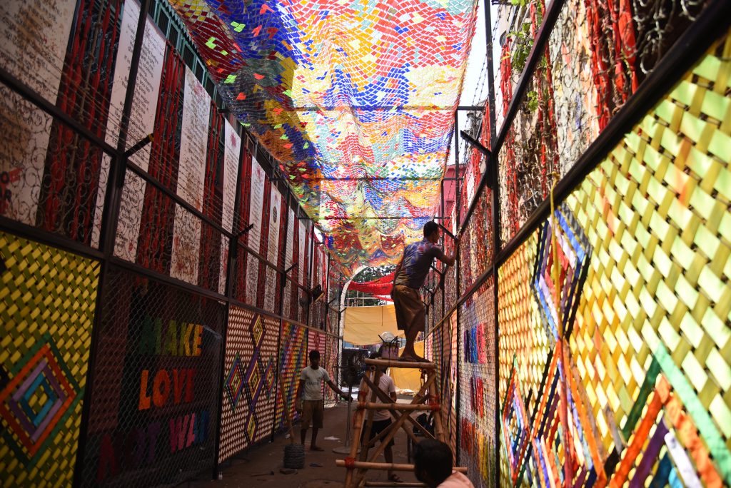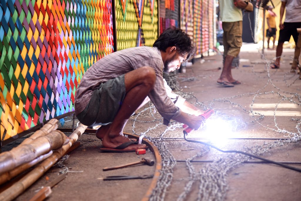 This year, the pandal’s theme is based on borders. “I’m creating fencing in an artistic way by welding barbed wires,” he added.